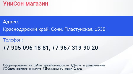 УниСон, магазин по адресу Краснодарский край, Сочи, Пластунская, 153Б в дальнейшем Организация, размещена в следующих категориях:
