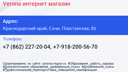 Verona, интернет-магазин по адресу Краснодарский край, Сочи, Пластунская, 81 в дальнейшем Организация, размещена в следующих категориях: