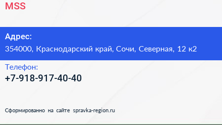 MSS по адресу 354000, Краснодарский край, Сочи, Северная, 12 к2 в дальнейшем Организация, размещена в следующих категориях: