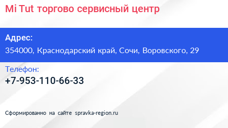 Mi-Tut, торгово-сервисный центр по адресу 354000, Краснодарский край, Сочи, Воровского, 29 в дальнейшем Организация, размещена в следующих категориях: