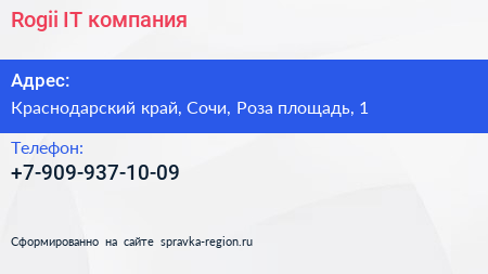 Rogii, IT-компания по адресу Краснодарский край, Сочи, Роза площадь, 1 в дальнейшем Организация, размещена в следующих категориях: