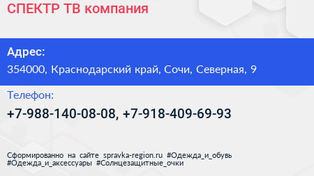СПЕКТР-ТВ, компания по адресу 354000, Краснодарский край, Сочи, Северная, 9 в дальнейшем Организация, размещена в следующих категориях: