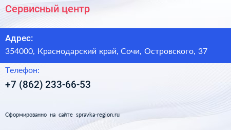 Сервисный центр по адресу 354000, Краснодарский край, Сочи, Островского, 37 в дальнейшем Организация, размещена в следующих категориях: