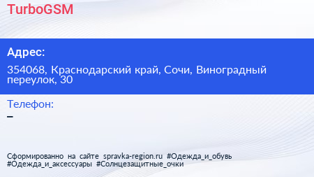 TurboGSM по адресу 354068, Краснодарский край, Сочи, Виноградный переулок, 30 в дальнейшем Организация, размещена в следующих категориях:
