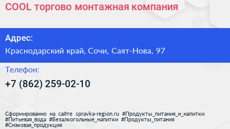 COOL, торгово-монтажная компания по адресу Краснодарский край, Сочи, Саят-Нова, 97 в дальнейшем Организация, размещена в следующих категориях: