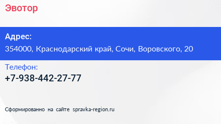 Эвотор по адресу 354000, Краснодарский край, Сочи, Воровского, 20 в дальнейшем Организация, размещена в следующих категориях: