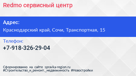Redmo, сервисный центр по адресу Краснодарский край, Сочи, Транспортная, 15 в дальнейшем Организация, размещена в следующих категориях: