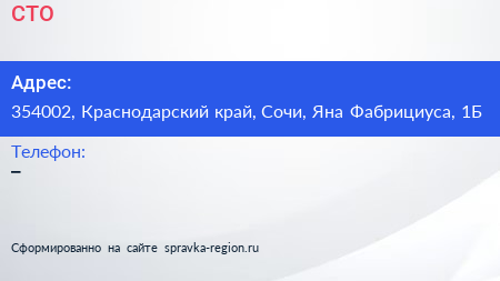 СТО по адресу 354002, Краснодарский край, Сочи, Яна Фабрициуса, 1Б в дальнейшем Организация, размещена в следующих категориях:
