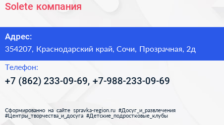 Solete, компания по адресу 354207, Краснодарский край, Сочи, Прозрачная, 2д в дальнейшем Организация, размещена в следующих категориях: