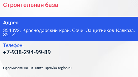 Строительная база по адресу 354392, Краснодарский край, Сочи, Защитников Кавказа, 35 к4 в дальнейшем Организация, размещена в следующих категориях: