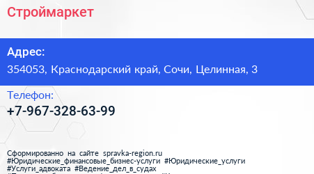 Строймаркет по адресу 354053, Краснодарский край, Сочи, Целинная, 3 в дальнейшем Организация, размещена в следующих категориях: