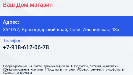 Ваш Дом, магазин по адресу 354057, Краснодарский край, Сочи, Альпийская, 43а в дальнейшем Организация, размещена в следующих категориях: