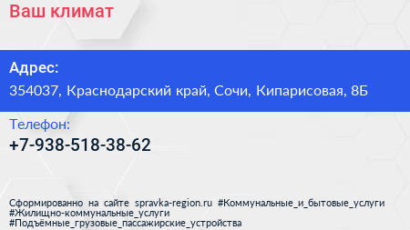 Ваш климат по адресу 354037, Краснодарский край, Сочи, Кипарисовая, 8Б в дальнейшем Организация, размещена в следующих категориях: