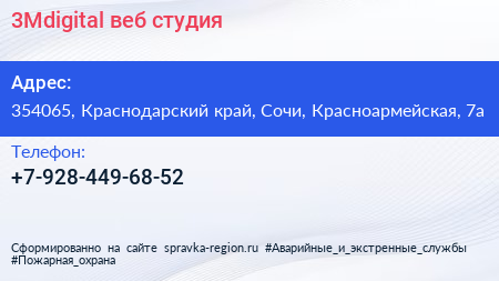 3Mdigital, веб-студия по адресу 354065, Краснодарский край, Сочи, Красноармейская, 7а в дальнейшем Организация, размещена в следующих категориях: