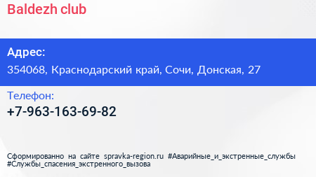 Baldezh.club по адресу 354068, Краснодарский край, Сочи, Донская, 27 в дальнейшем Организация, размещена в следующих категориях: