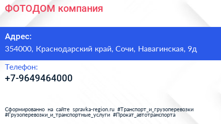 ФОТОДОМ, компания по адресу 354000, Краснодарский край, Сочи, Навагинская, 9д в дальнейшем Организация, размещена в следующих категориях: