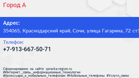 Город.А по адресу 354065, Краснодарский край, Сочи, улица Гагарина, 72 ст1 в дальнейшем Организация, размещена в следующих категориях: