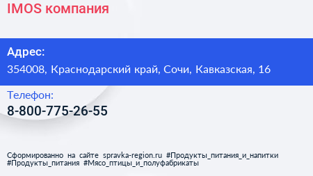 IMOS, компания по адресу 354008, Краснодарский край, Сочи, Кавказская, 16 в дальнейшем Организация, размещена в следующих категориях:
