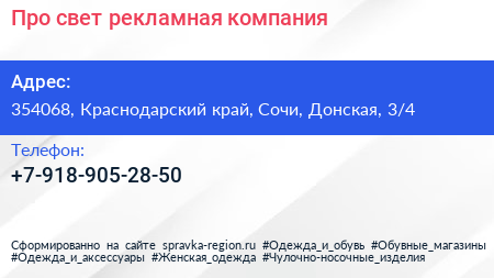 Про-свет, рекламная компания по адресу 354068, Краснодарский край, Сочи, Донская, 3/4 в дальнейшем Организация, размещена в следующих категориях: