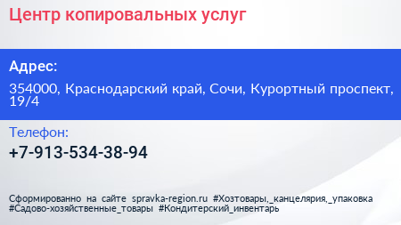 Центр копировальных услуг по адресу 354000, Краснодарский край, Сочи, Курортный проспект, 19/4 в дальнейшем Организация, размещена в следующих категориях: