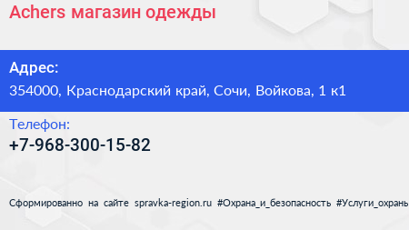 Achers, магазин одежды по адресу 354000, Краснодарский край, Сочи, Войкова, 1 к1 в дальнейшем Организация, размещена в следующих категориях: