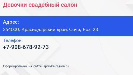 Девочки, свадебный салон по адресу 354000, Краснодарский край, Сочи, Роз, 23 в дальнейшем Организация, размещена в следующих категориях:
