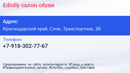 Ediolly, салон обуви по адресу Краснодарский край, Сочи, Транспортная, 28 в дальнейшем Организация, размещена в следующих категориях: