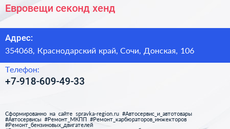 Евровещи, секонд-хенд по адресу 354068, Краснодарский край, Сочи, Донская, 106 в дальнейшем Организация, размещена в следующих категориях: