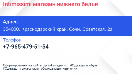 Intimissimi, магазин нижнего белья по адресу 354000, Краснодарский край, Сочи, Советская, 2а в дальнейшем Организация, размещена в следующих категориях:
