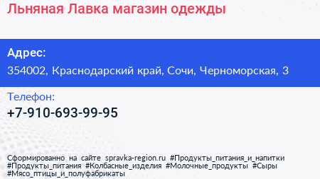 Льняная Лавка, магазин одежды по адресу 354002, Краснодарский край, Сочи, Черноморская, 3 в дальнейшем Организация, размещена в следующих категориях: