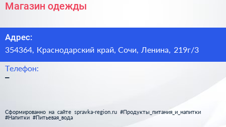 Магазин одежды по адресу 354364, Краснодарский край, Сочи, Ленина, 219г/3 в дальнейшем Организация, размещена в следующих категориях:
