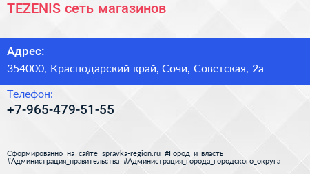 TEZENIS, сеть магазинов по адресу 354000, Краснодарский край, Сочи, Советская, 2а в дальнейшем Организация, размещена в следующих категориях: