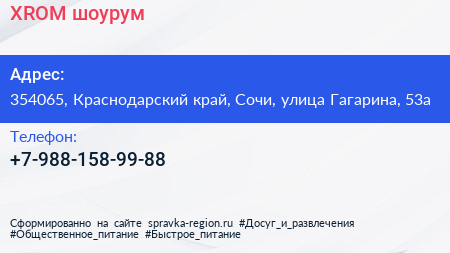 XROM, шоурум по адресу 354065, Краснодарский край, Сочи, улица Гагарина, 53а в дальнейшем Организация, размещена в следующих категориях:
