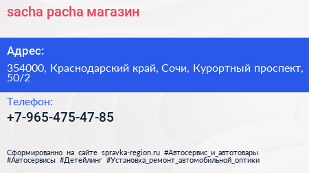 sacha pacha, магазин по адресу 354000, Краснодарский край, Сочи, Курортный проспект, 50/2 в дальнейшем Организация, размещена в следующих категориях: