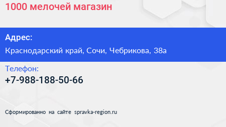 1000 мелочей, магазин по адресу Краснодарский край, Сочи, Чебрикова, 38а в дальнейшем Организация, размещена в следующих категориях: