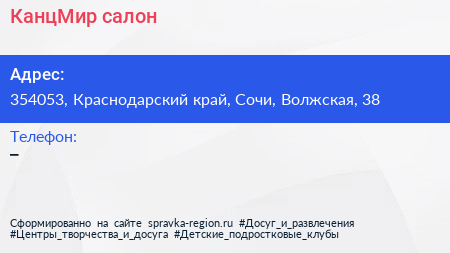 КанцМир, салон по адресу 354053, Краснодарский край, Сочи, Волжская, 38 в дальнейшем Организация, размещена в следующих категориях: