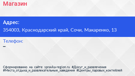 Магазин по адресу 354003, Краснодарский край, Сочи, Макаренко, 13 в дальнейшем Организация, размещена в следующих категориях: