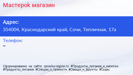 Мастерok, магазин по адресу 354004, Краснодарский край, Сочи, Тепличная, 17а в дальнейшем Организация, размещена в следующих категориях: