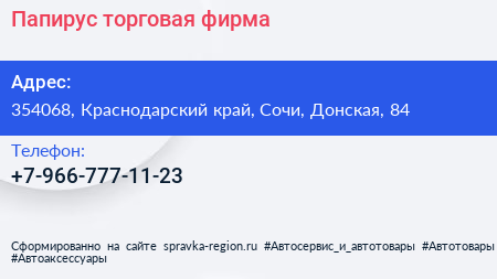 Папирус, торговая фирма по адресу 354068, Краснодарский край, Сочи, Донская, 84 в дальнейшем Организация, размещена в следующих категориях: