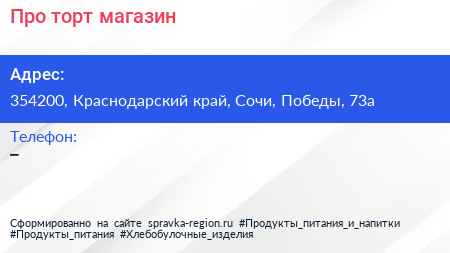 Про торт, магазин по адресу 354200, Краснодарский край, Сочи, Победы, 73а в дальнейшем Организация, размещена в следующих категориях:
