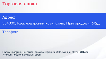 Торговая лавка по адресу 354000, Краснодарский край, Сочи, Пригородная, 6/2д в дальнейшем Организация, размещена в следующих категориях: