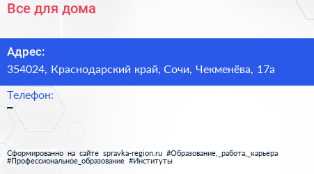 Все для дома по адресу 354024, Краснодарский край, Сочи, Чекменёва, 17а в дальнейшем Организация, размещена в следующих категориях: