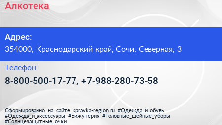Алкотека по адресу 354000, Краснодарский край, Сочи, Северная, 3 в дальнейшем Организация, размещена в следующих категориях: