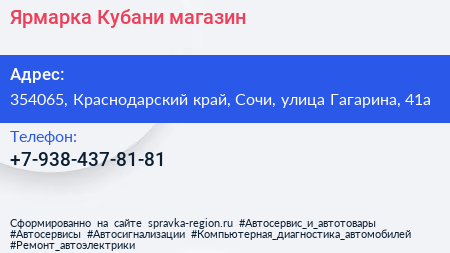Ярмарка Кубани, магазин по адресу 354065, Краснодарский край, Сочи, улица Гагарина, 41а в дальнейшем Организация, размещена в следующих категориях:
