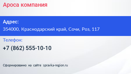 Ароса, компания по адресу 354000, Краснодарский край, Сочи, Роз, 117 в дальнейшем Организация, размещена в следующих категориях: