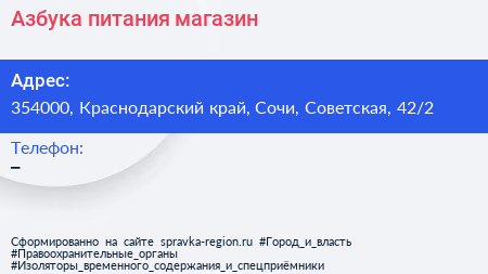 Азбука питания, магазин по адресу 354000, Краснодарский край, Сочи, Советская, 42/2 в дальнейшем Организация, размещена в следующих категориях: