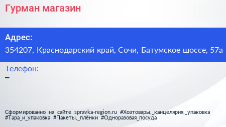 Гурман, магазин по адресу 354207, Краснодарский край, Сочи, Батумское шоссе, 57а в дальнейшем Организация, размещена в следующих категориях: