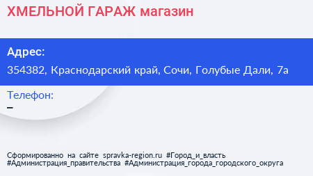 ХМЕЛЬНОЙ ГАРАЖ, магазин по адресу 354382, Краснодарский край, Сочи, Голубые Дали, 7а в дальнейшем Организация, размещена в следующих категориях: