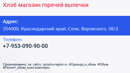 Хлэб, магазин горячей выпечки по адресу 354000, Краснодарский край, Сочи, Воровского, 58/2 в дальнейшем Организация, размещена в следующих категориях: