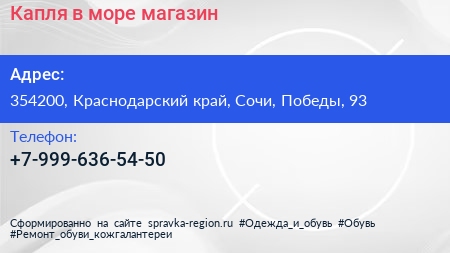 Капля в море, магазин по адресу 354200, Краснодарский край, Сочи, Победы, 93 в дальнейшем Организация, размещена в следующих категориях: